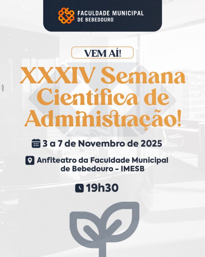 Faculdade Municipal de Bebedouro anuncia a 34ª Semana Científica de Administração, tendo como tema central a Sustentabilidade. Aberto gratuitamente ao público, o objetivo é promover a formação complementar dos estudantes, fortalecer a integração entre teoria e prática e fomentar o diálogo com a comunidade acadêmica e profissionais da área. As atividades acontecem a partir das […]