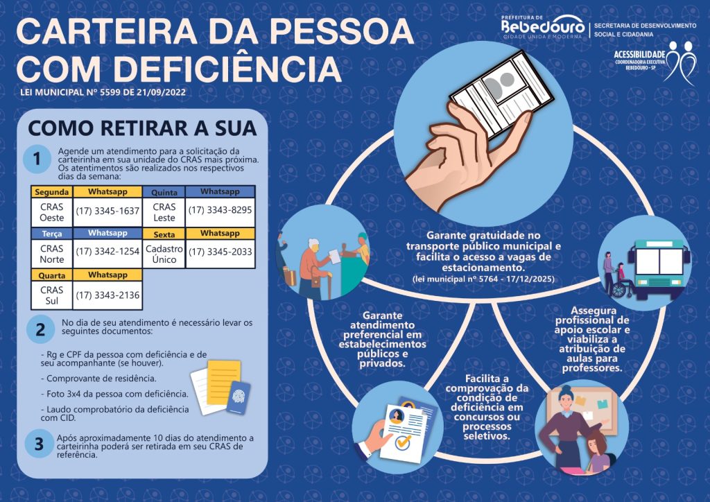 Prefeitura e Secretaria Municipal de Desenvolvimento Social e Cidadania divulgam a “Carteira da Pessoa com Deficiência”, instrumento que garante direitos, promove inclusão e permite acesso a diversos serviços em Bebedouro. Entre os benefícios, gratuidade no transporte público municipal, acesso facilitado a vagas de estacionamento, atendimento preferencial em estabelecimentos públicos e privados, além de auxiliar na […]